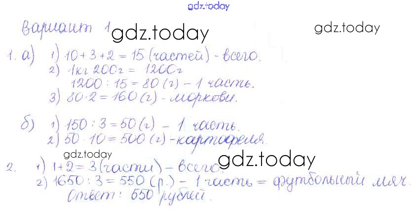 Ответы к ПР №16. Решение задач по части Решение к проверочным работам вариант-1 Дидактическим материалам по Математике для 5 класса Кузнецова, Минаева Просвещение Академический школьный учебник 2014