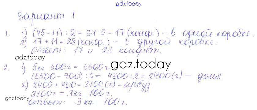 Ответы к ПР №17. Решение задач на уравнивание Решение к проверочным работам вариант-1 Дидактическим материалам по Математике для 5 класса Кузнецова, Минаева Просвещение Академический школьный учебник 2014