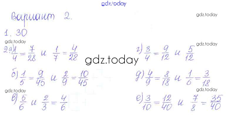 Ответы к ПР №27. Приведение дробей к общему знаменателю Решение к проверочным работам вариант-2 Дидактическим материалам по Математике для 5 класса Кузнецова, Минаева Просвещение Академический школьный учебник 2014