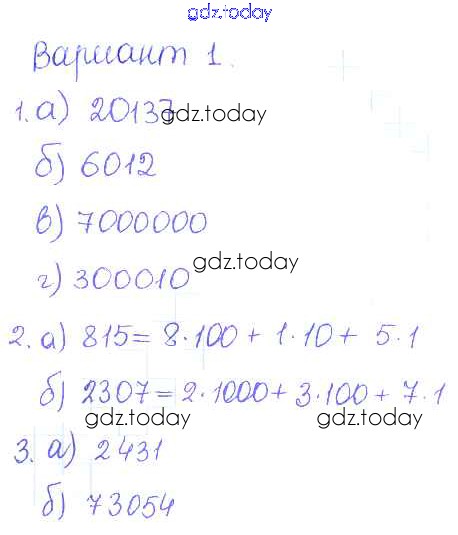 Ответы к ПР №3. Запись натуральных чисел Решение к проверочным работам вариант-1 Дидактическим материалам по Математике для 5 класса Кузнецова, Минаева Просвещение Академический школьный учебник 2014
