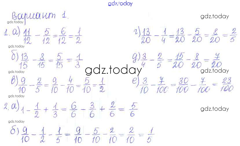 На страницах сайта gdz.today вы найдете учебный и вспомогательный материал, направленный на улучшения знаний школьной программы. ГДЗ - онлайн мир знаний ПР №31. Вычитание дробей Решение к проверочным работам вариант-1 Дидактическим материалам по Математике для 5 класса Кузнецова, Минаева Просвещение Академический школьный учебник 2014
