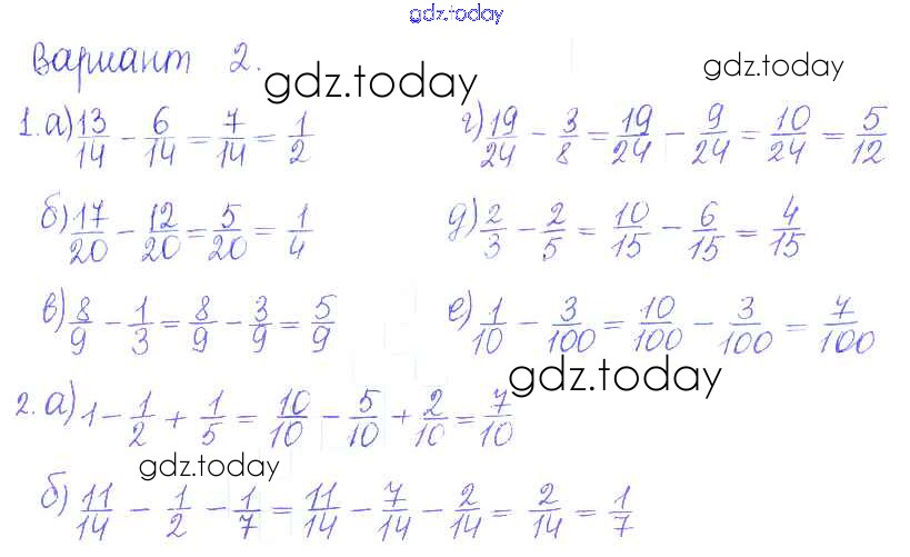 На страницах сайта gdz.today вы найдете учебный и вспомогательный материал, направленный на улучшения знаний школьной программы. ГДЗ - онлайн мир знаний ПР №31. Вычитание дробей Решение к проверочным работам вариант-2 Дидактическим материалам по Математике для 5 класса Кузнецова, Минаева Просвещение Академический школьный учебник 2014