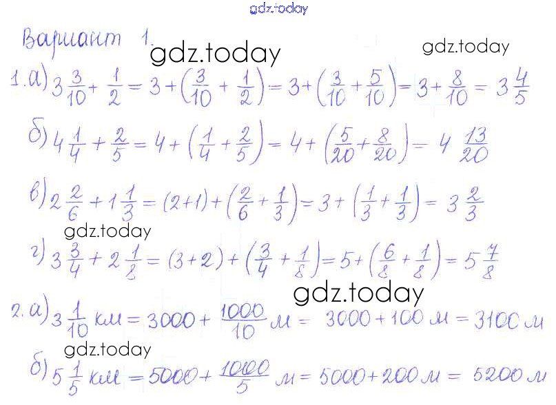 Ответы к ПР №33. Сложение смешанных дробей Решение к проверочным работам вариант-1 Дидактическим материалам по Математике для 5 класса Кузнецова, Минаева Просвещение Академический школьный учебник 2014