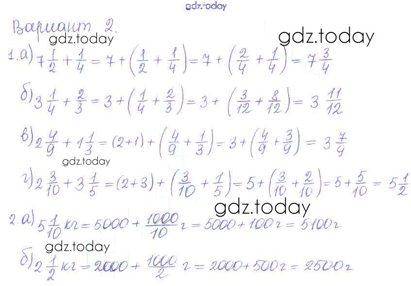 Ответы к ПР №33. Сложение смешанных дробей Решение к проверочным работам вариант-2 Дидактическим материалам по Математике для 5 класса Кузнецова, Минаева Просвещение Академический школьный учебник 2014