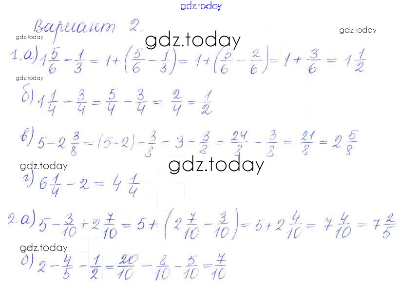 На страницах сайта gdz.today вы найдете учебный и вспомогательный материал, направленный на улучшения знаний школьной программы. ГДЗ - онлайн мир знаний ПР №34. Вычитание смешанных дробей Решение к проверочным работам вариант-2 Дидактическим материалам по Математике для 5 класса Кузнецова, Минаева Просвещение Академический школьный учебник 2014