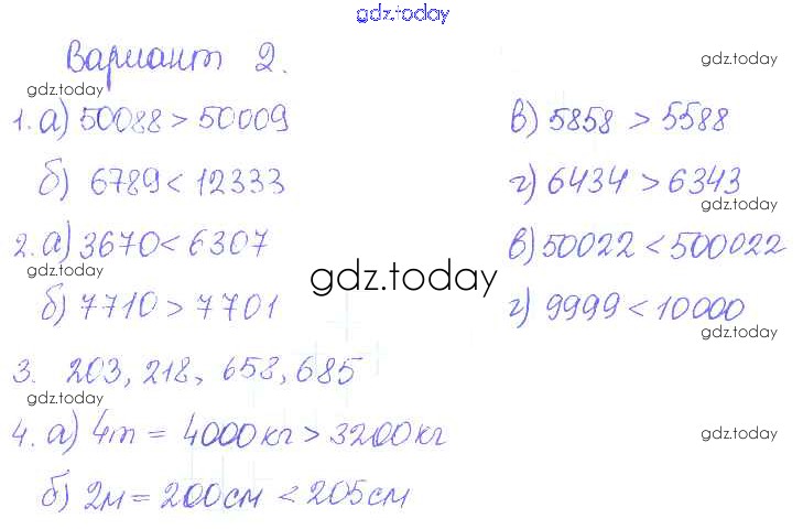 На страницах сайта gdz.today вы найдете учебный и вспомогательный материал, направленный на улучшения знаний школьной программы. ГДЗ - онлайн мир знаний ПР №4. Сравнение чисел Решение к проверочным работам вариант-2 Дидактическим материалам по Математике для 5 класса Кузнецова, Минаева Просвещение Академический школьный учебник 2014