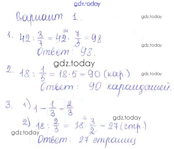 Ответы к ПР №40. Нахождение целого по его части Решение к проверочным работам вариант-1 Дидактическим материалам по Математике для 5 класса Кузнецова, Минаева Просвещение Академический школьный учебник 2014