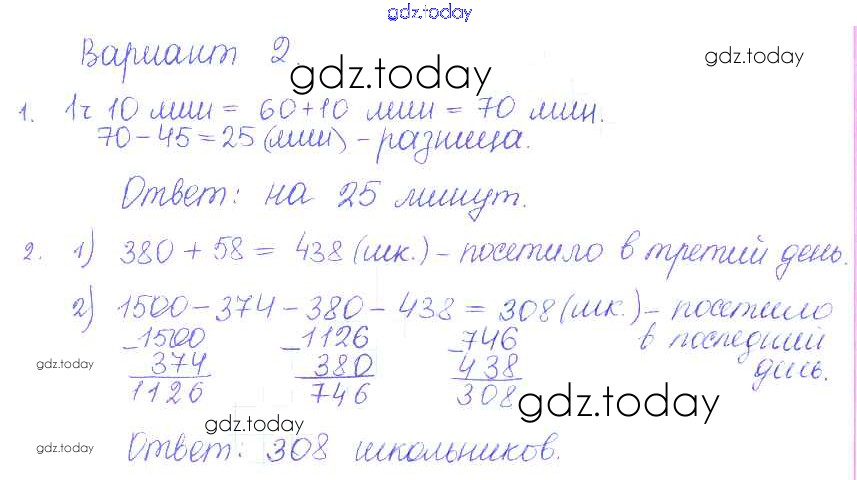 На страницах сайта gdz.today вы найдете учебный и вспомогательный материал, направленный на улучшения знаний школьной программы. ГДЗ - онлайн мир знаний ПР №7. Сложение и вычитание - решение задач Решение к проверочным работам вариант-2 Дидактическим материалам по Математике для 5 класса Кузнецова, Минаева Просвещение Академический школьный учебник 2014