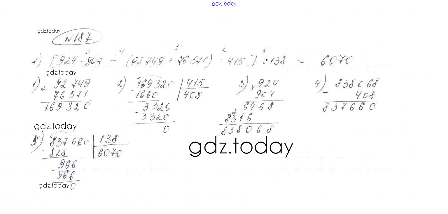 Ответы к Часть 1. Решение к упражнениям 187 Учебнику по Математике для 5 класса Петерсон, Дорофеев Ювента 2014