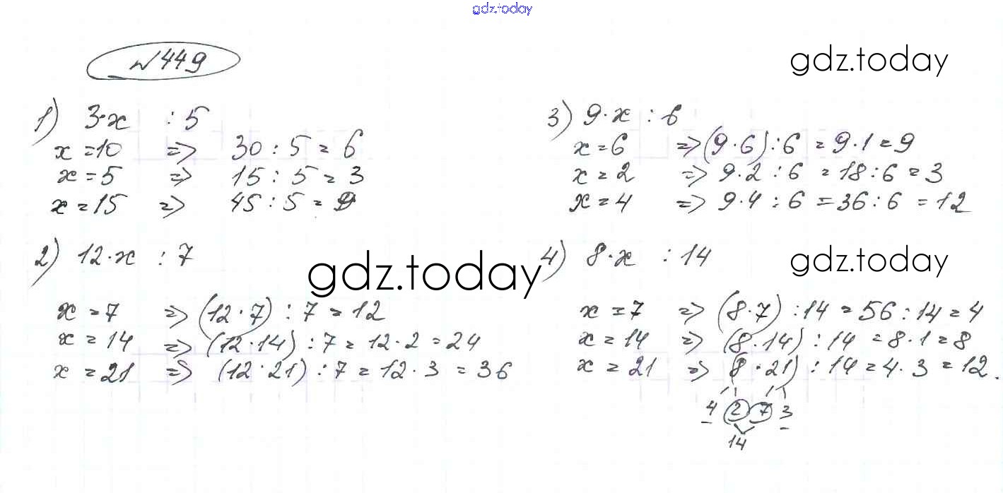 Ответы к Часть 1. Решение к упражнениям 449 Учебнику по Математике для 5 класса Петерсон, Дорофеев Ювента 2014