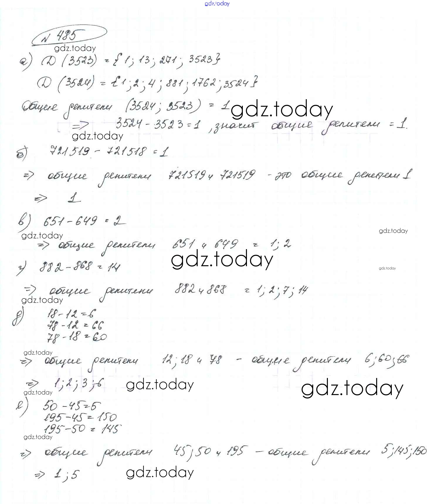 Ответы к Часть 1. Решение к упражнениям 485 Учебнику по Математике для 5 класса Петерсон, Дорофеев Ювента 2014