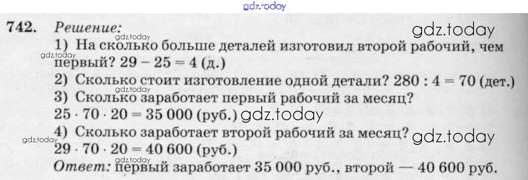 Ответы к Часть 1. Решение к упражнениям 742 Учебнику по Математике для 5 класса Петерсон, Дорофеев Ювента 2014