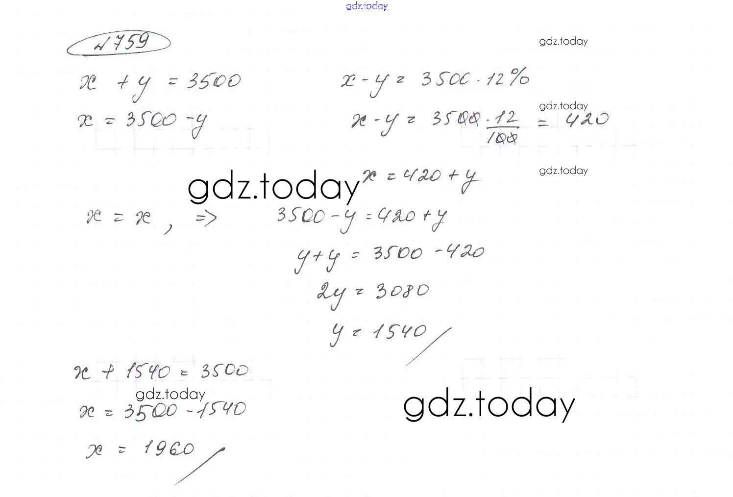 Ответы к Часть 1. Решение к упражнениям 759 Учебнику по Математике для 5 класса Петерсон, Дорофеев Ювента 2014