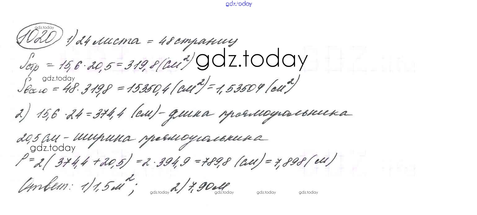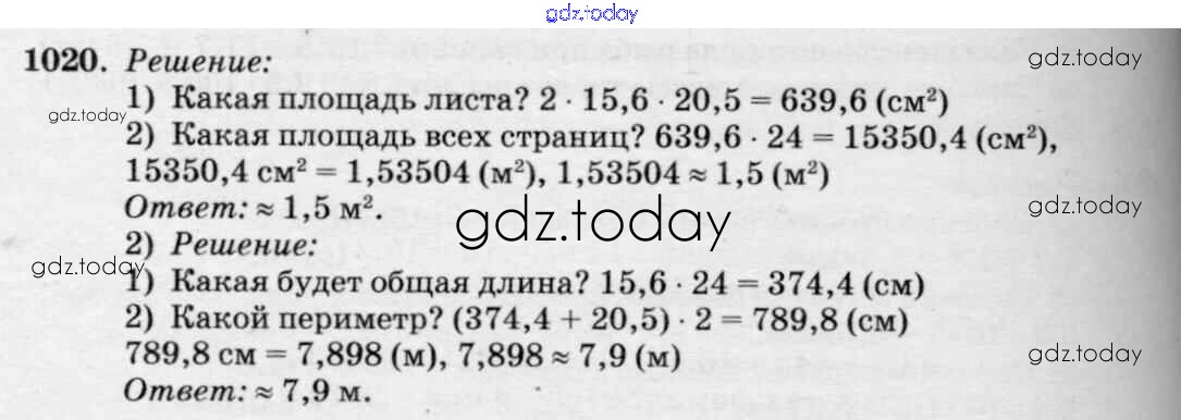 Ответы к Часть 2. Решение к упражнениям 1020 Учебнику по Математике для 5 класса Петерсон, Дорофеев Ювента 2014