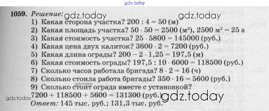 Ответы к Часть 2. Решение к упражнениям 1059 Учебнику по Математике для 5 класса Петерсон, Дорофеев Ювента 2014