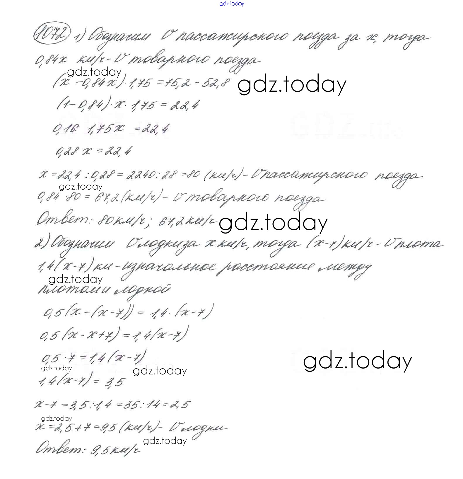 Ответы к Часть 2. Решение к упражнениям 1072 Учебнику по Математике для 5 класса Петерсон, Дорофеев Ювента 2014