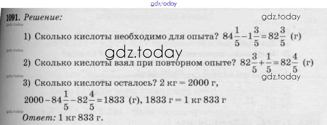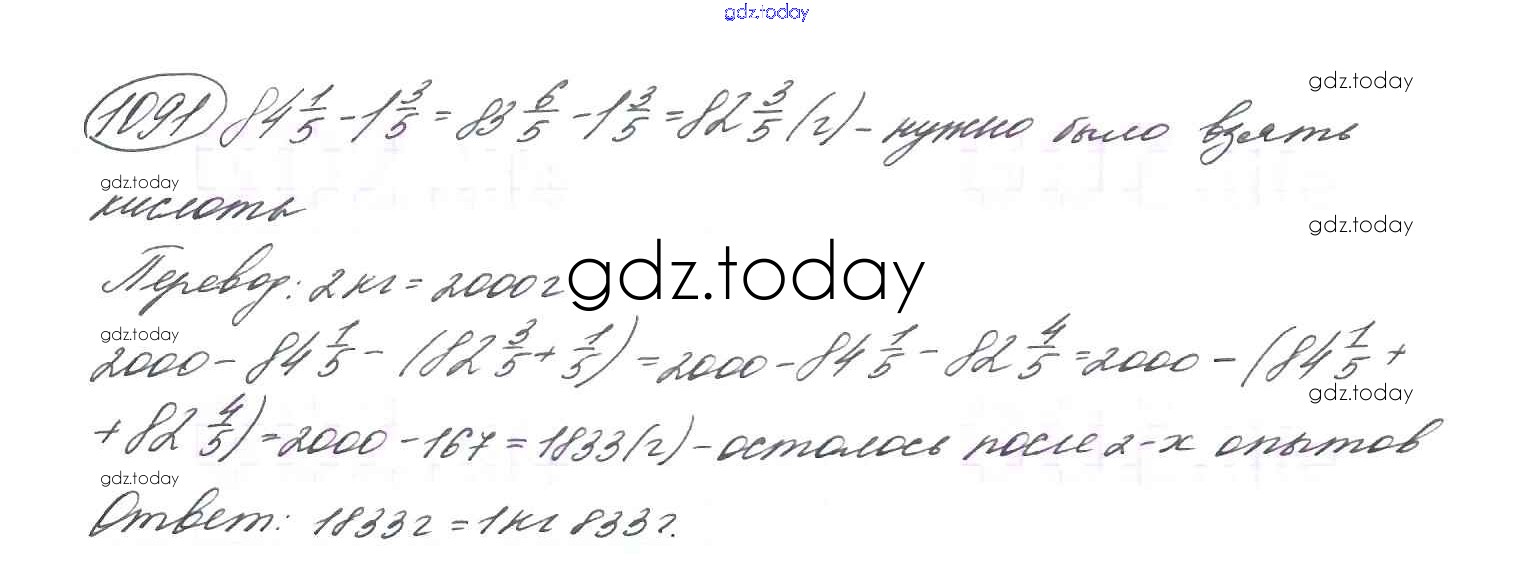 Ответы к Часть 2. Решение к упражнениям 1091 Учебнику по Математике для 5 класса Петерсон, Дорофеев Ювента 2014