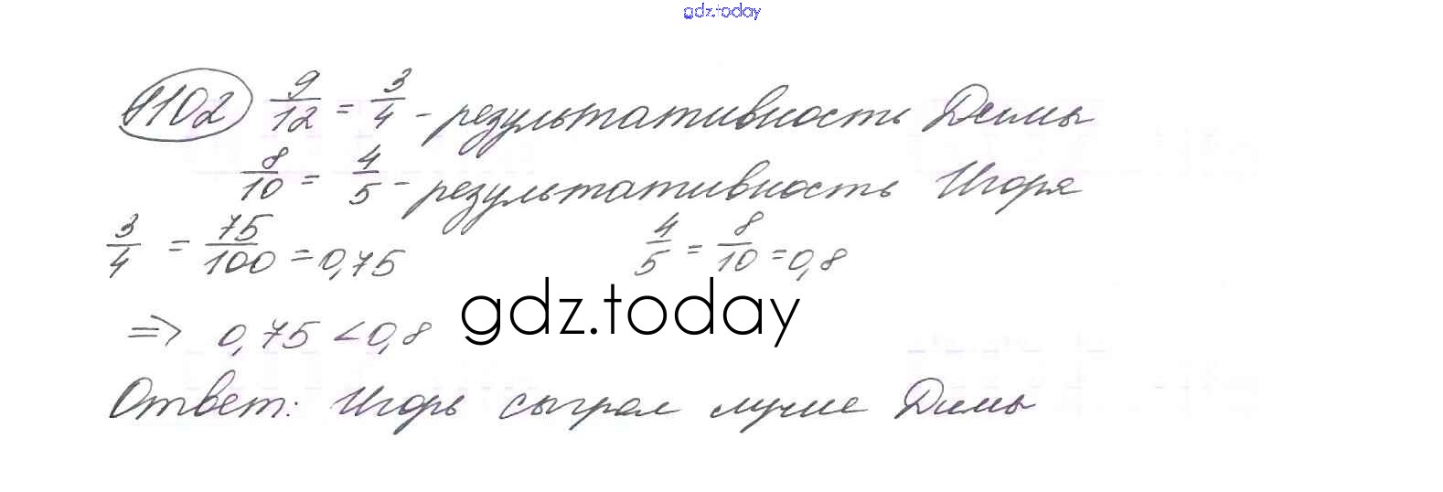 Ответы к Часть 2. Решение к упражнениям 1102 Учебнику по Математике для 5 класса Петерсон, Дорофеев Ювента 2014