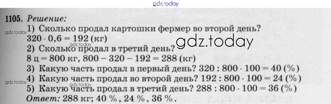 Ответы к Часть 2. Решение к упражнениям 1105 Учебнику по Математике для 5 класса Петерсон, Дорофеев Ювента 2014