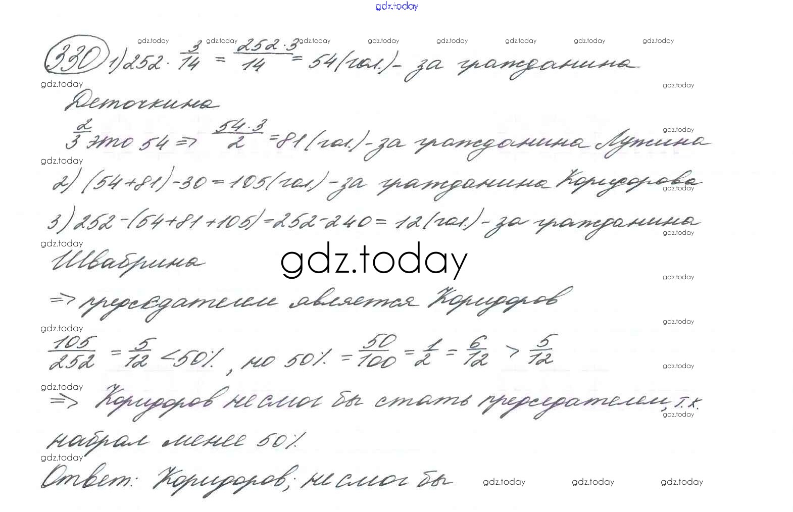 Ответы к Часть 2. Решение к упражнениям 330 Учебнику по Математике для 5 класса Петерсон, Дорофеев Ювента 2014