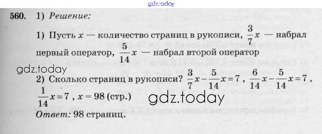 Ответы к Часть 2. Решение к упражнениям 560 Учебнику по Математике для 5 класса Петерсон, Дорофеев Ювента 2014