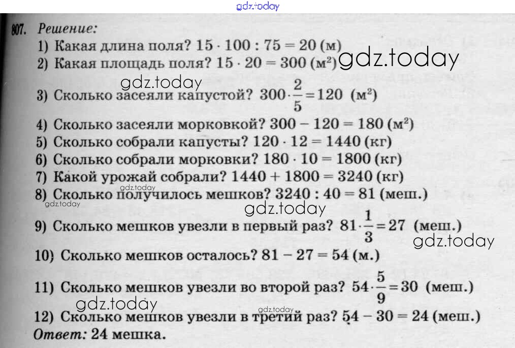 Ответы к Часть 2. Решение к упражнениям 807 Учебнику по Математике для 5 класса Петерсон, Дорофеев Ювента 2014