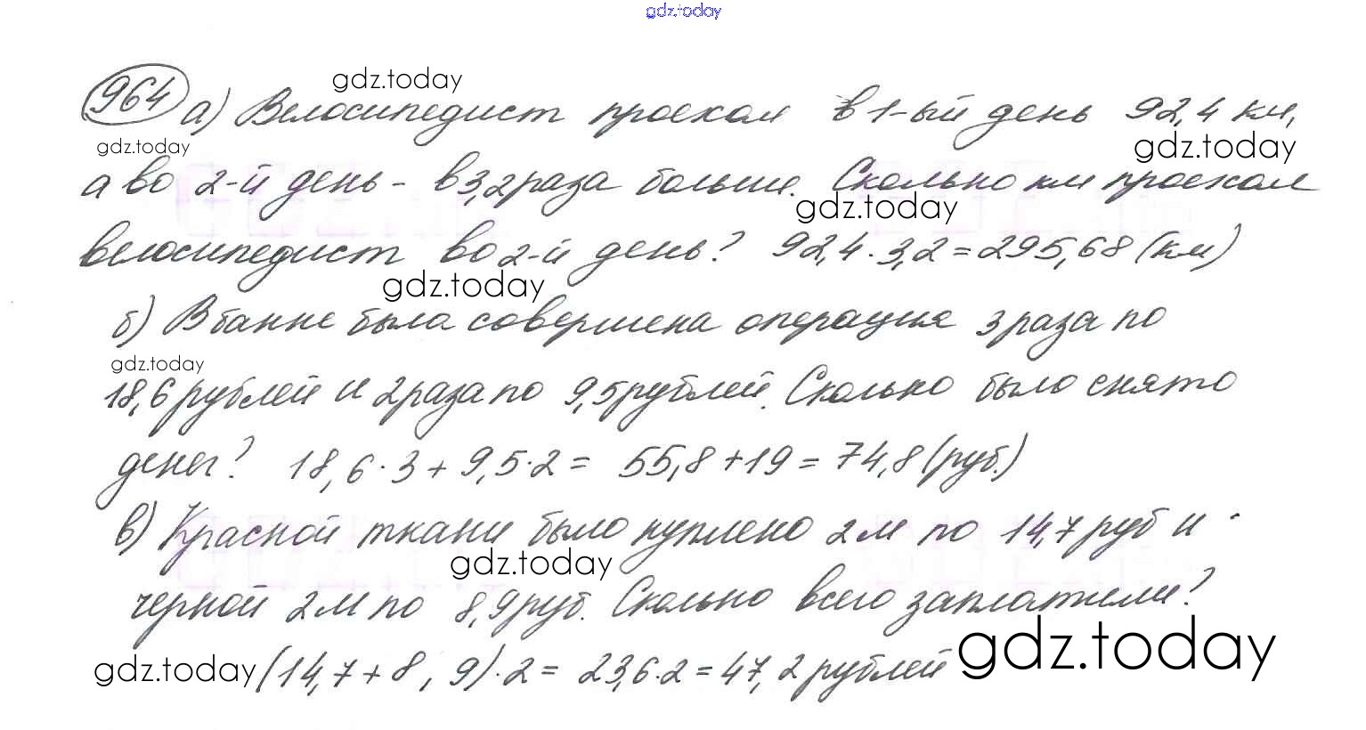 Ответы к Часть 2. Решение к упражнениям 964 Учебнику по Математике для 5 класса Петерсон, Дорофеев Ювента 2014