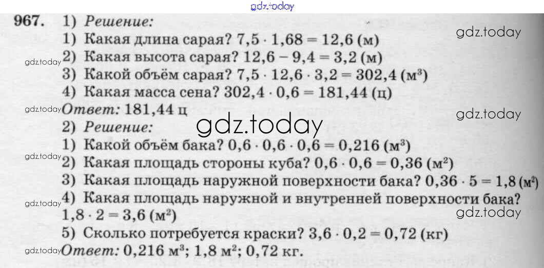 Ответы к Часть 2. Решение к упражнениям 967 Учебнику по Математике для 5 класса Петерсон, Дорофеев Ювента 2014