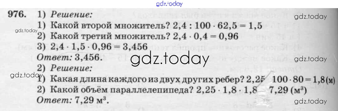 Ответы к Часть 2. Решение к упражнениям 976 Учебнику по Математике для 5 класса Петерсон, Дорофеев Ювента 2014