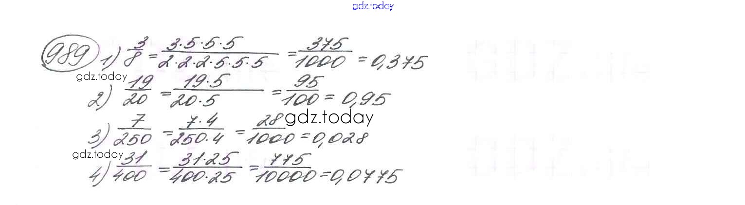 Ответы к Часть 2. Решение к упражнениям 989 Учебнику по Математике для 5 класса Петерсон, Дорофеев Ювента 2014