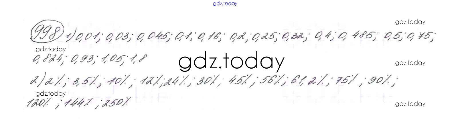 Ответы к Часть 2. Решение к упражнениям 998 Учебнику по Математике для 5 класса Петерсон, Дорофеев Ювента 2014