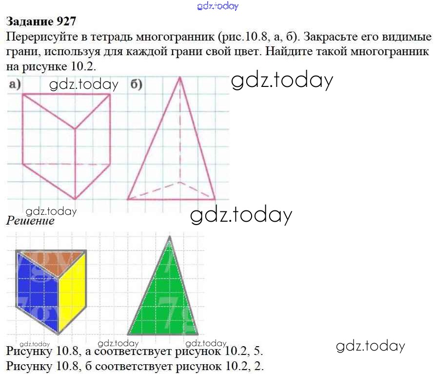 На страницах сайта gdz.today вы найдете учебный и вспомогательный материал, направленный на улучшения знаний школьной программы. ГДЗ - онлайн мир знаний 10.1. Геометрические тела и их изображение Глава 10. Многогранники 927 Учебнику по Математике для 5 класса Дорофеев, Шарыгин Просвещение 2015