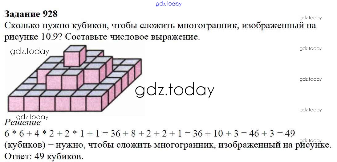 На страницах сайта gdz.today вы найдете учебный и вспомогательный материал, направленный на улучшения знаний школьной программы. ГДЗ - онлайн мир знаний 10.1. Геометрические тела и их изображение Глава 10. Многогранники 928 Учебнику по Математике для 5 класса Дорофеев, Шарыгин Просвещение 2015