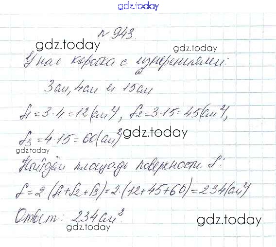 Ответы к 10.2. Параллелепипед Глава 10. Многогранники 943 Учебнику по Математике для 5 класса Дорофеев, Шарыгин Просвещение 2015