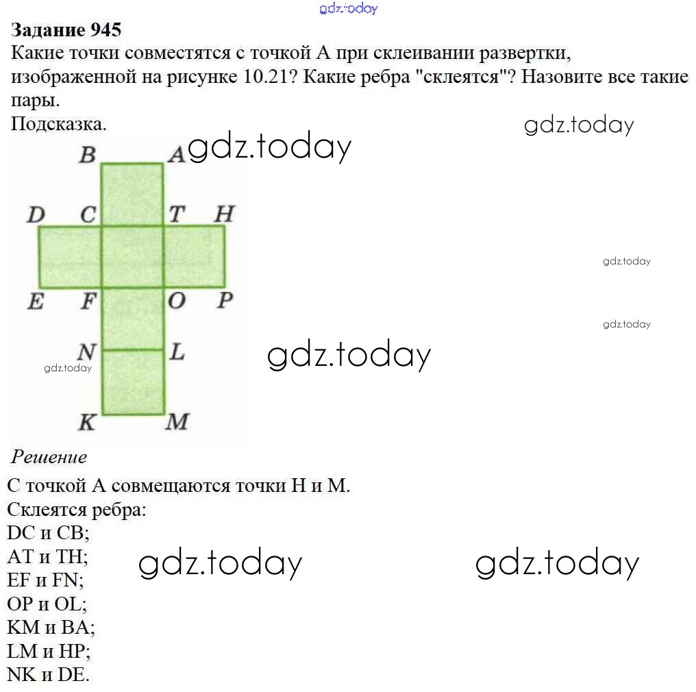 На страницах сайта gdz.today вы найдете учебный и вспомогательный материал, направленный на улучшения знаний школьной программы. ГДЗ - онлайн мир знаний 10.2. Параллелепипед Глава 10. Многогранники 945 Учебнику по Математике для 5 класса Дорофеев, Шарыгин Просвещение 2015
