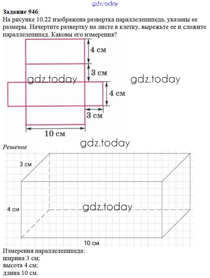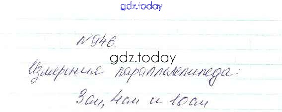 На страницах сайта gdz.today вы найдете учебный и вспомогательный материал, направленный на улучшения знаний школьной программы. ГДЗ - онлайн мир знаний 10.2. Параллелепипед Глава 10. Многогранники 946 Учебнику по Математике для 5 класса Дорофеев, Шарыгин Просвещение 2015
