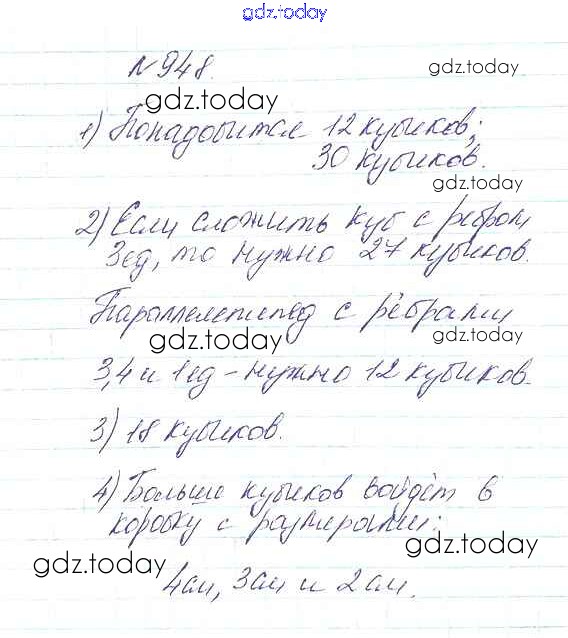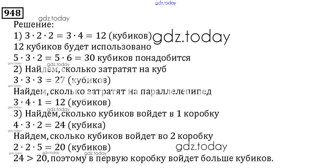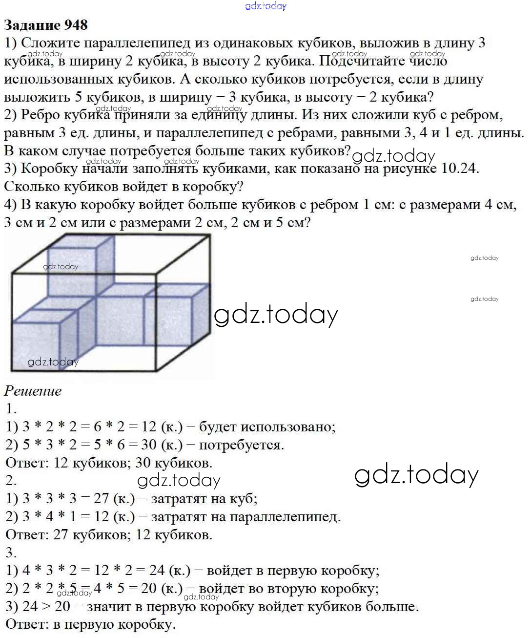 На страницах сайта gdz.today вы найдете учебный и вспомогательный материал, направленный на улучшения знаний школьной программы. ГДЗ - онлайн мир знаний 10.2. Параллелепипед Глава 10. Многогранники 948 Учебнику по Математике для 5 класса Дорофеев, Шарыгин Просвещение 2015