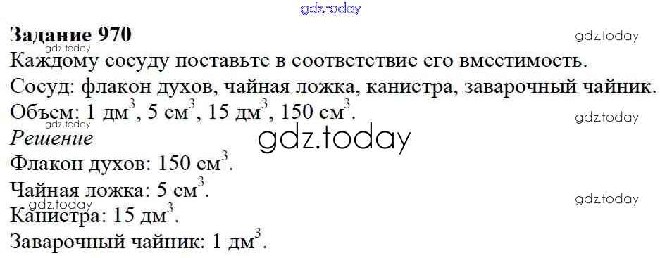 На страницах сайта gdz.today вы найдете учебный и вспомогательный материал, направленный на улучшения знаний школьной программы. ГДЗ - онлайн мир знаний 10.3. Объем параллелепипеда Глава 10. Многогранники 970 Учебнику по Математике для 5 класса Дорофеев, Шарыгин Просвещение 2015
