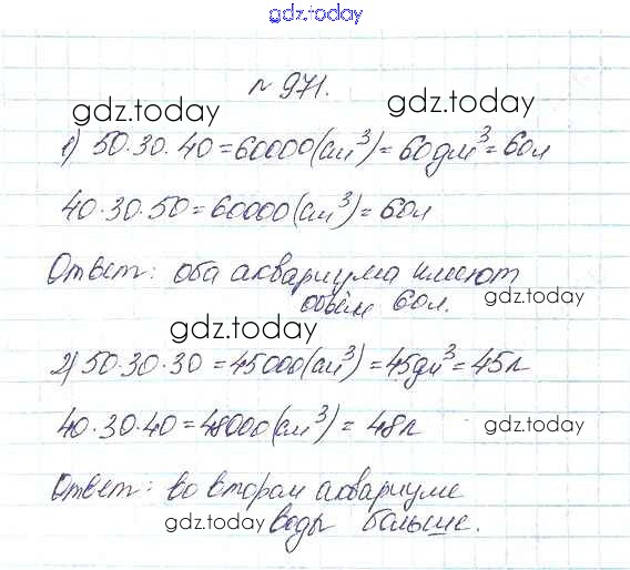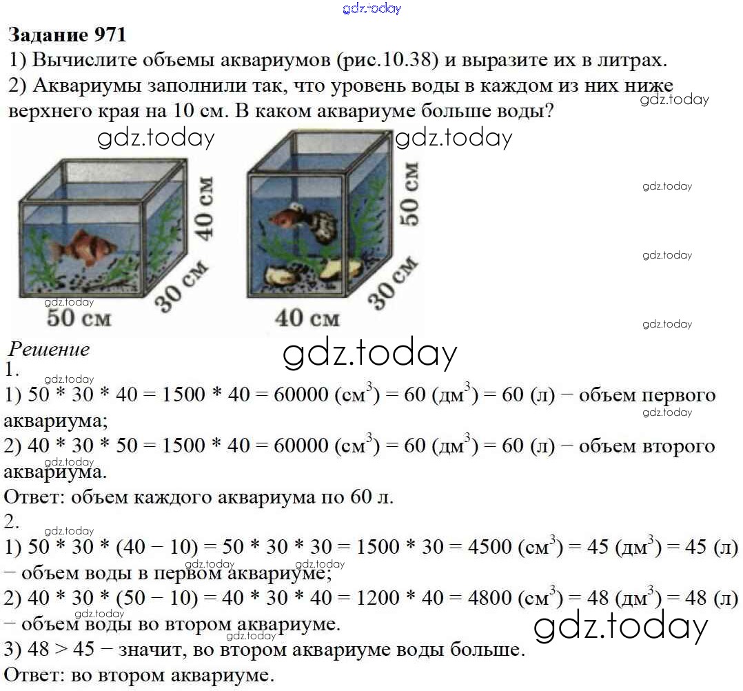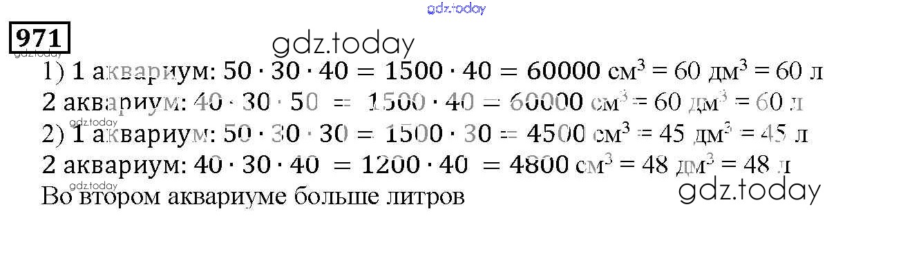 На страницах сайта gdz.today вы найдете учебный и вспомогательный материал, направленный на улучшения знаний школьной программы. ГДЗ - онлайн мир знаний 10.3. Объем параллелепипеда Глава 10. Многогранники 971 Учебнику по Математике для 5 класса Дорофеев, Шарыгин Просвещение 2015