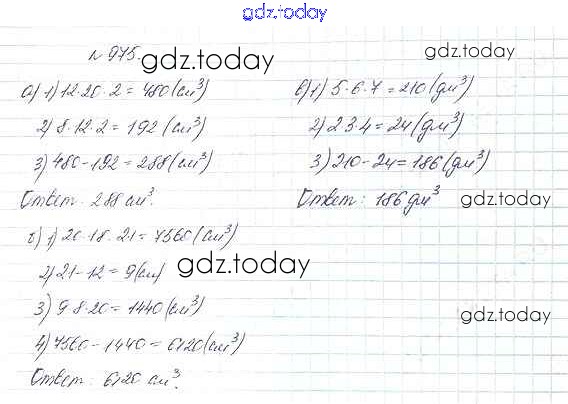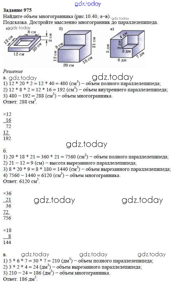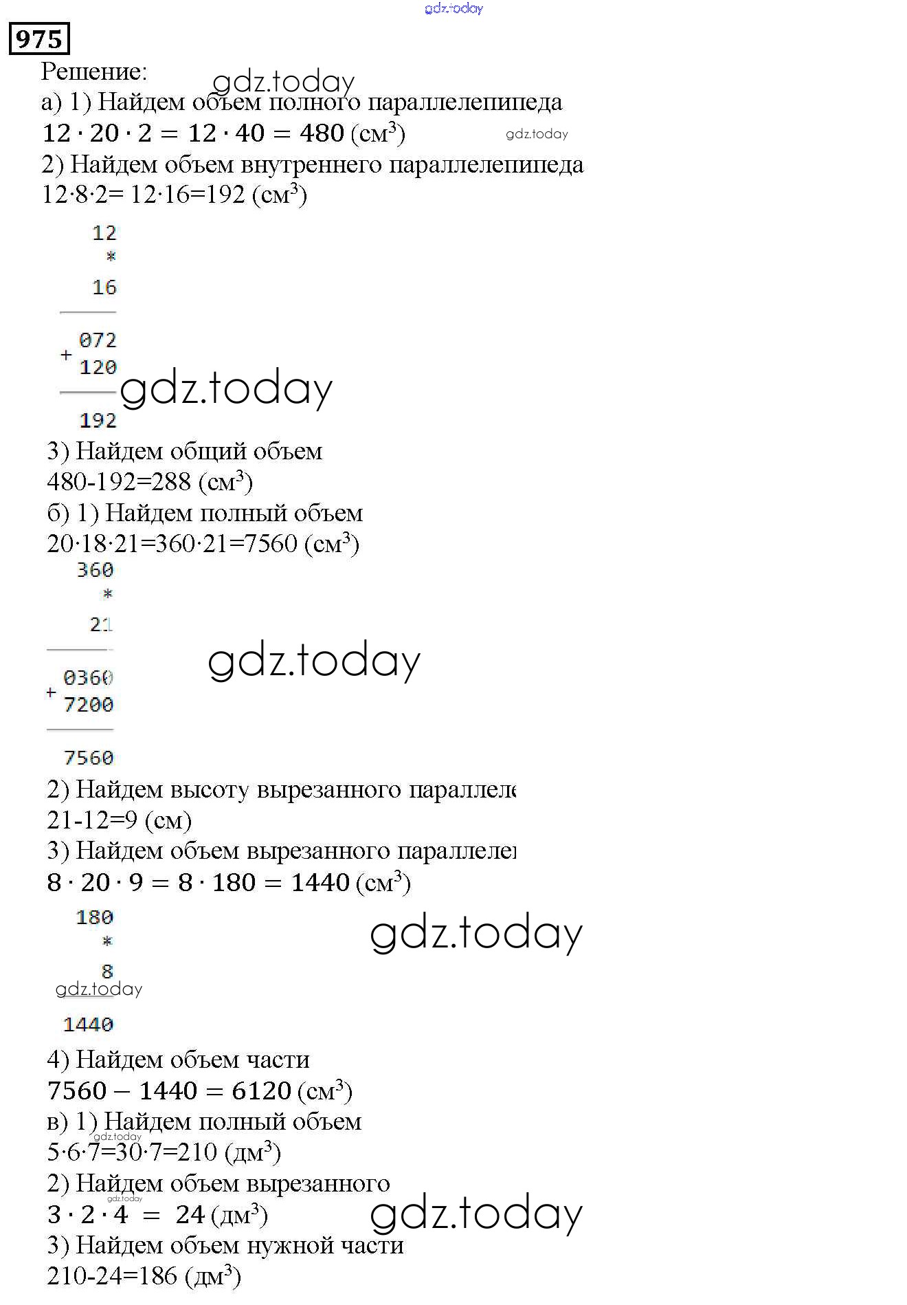 На страницах сайта gdz.today вы найдете учебный и вспомогательный материал, направленный на улучшения знаний школьной программы. ГДЗ - онлайн мир знаний 10.3. Объем параллелепипеда Глава 10. Многогранники 975 Учебнику по Математике для 5 класса Дорофеев, Шарыгин Просвещение 2015
