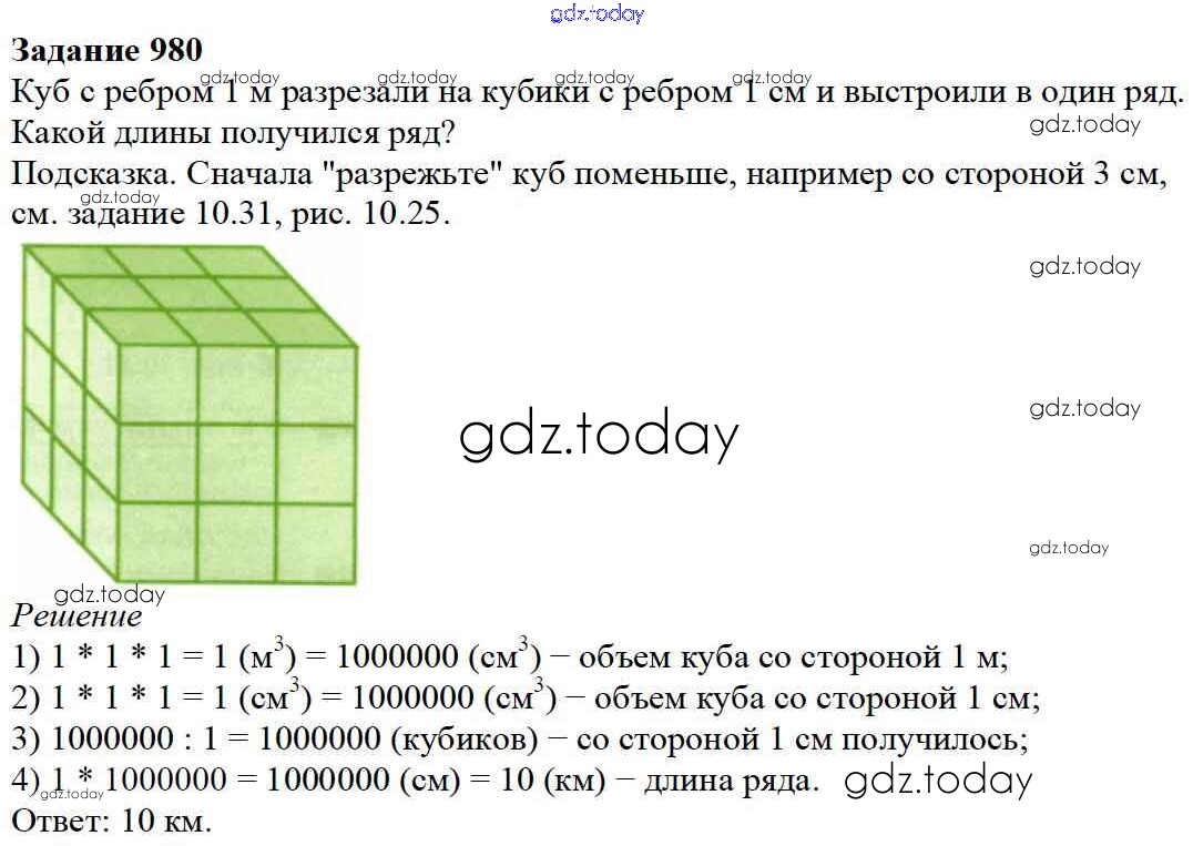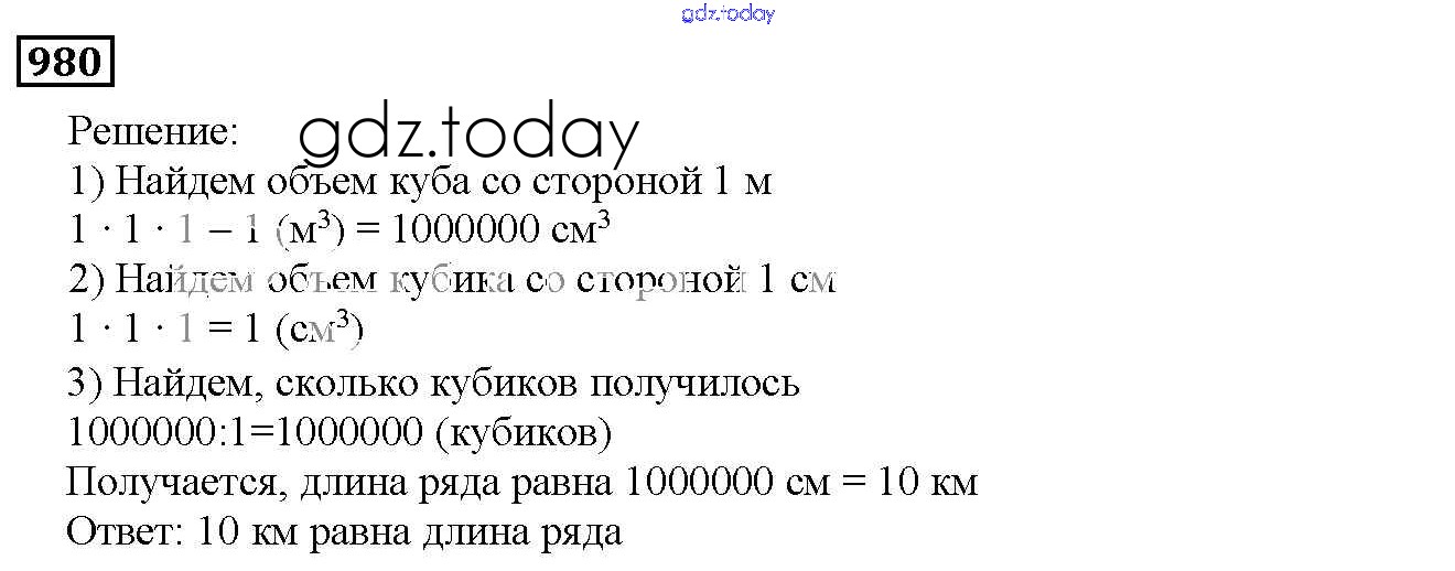 На страницах сайта gdz.today вы найдете учебный и вспомогательный материал, направленный на улучшения знаний школьной программы. ГДЗ - онлайн мир знаний 10.3. Объем параллелепипеда Глава 10. Многогранники 980 Учебнику по Математике для 5 класса Дорофеев, Шарыгин Просвещение 2015