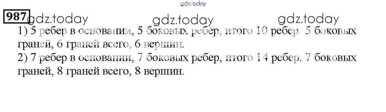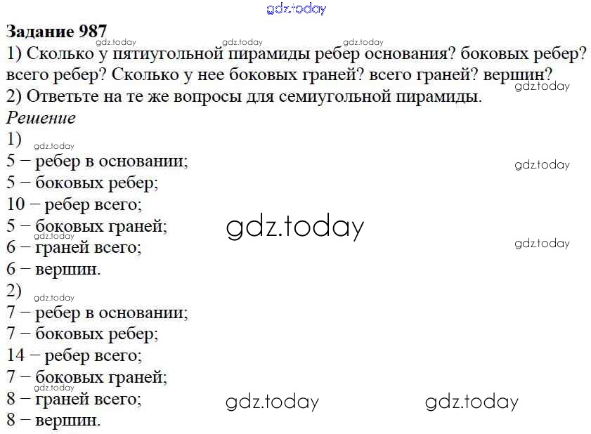 Ответы к 10.4. Пирамида Глава 10. Многогранники 987 Учебнику по Математике для 5 класса Дорофеев, Шарыгин Просвещение 2015
