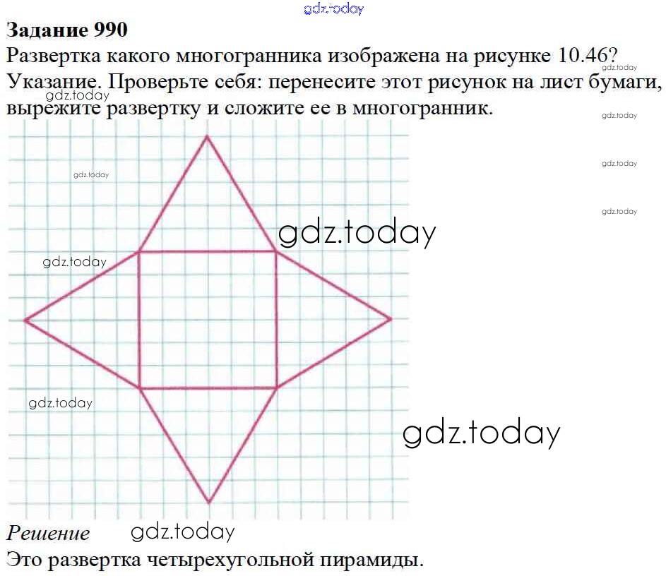 На страницах сайта gdz.today вы найдете учебный и вспомогательный материал, направленный на улучшения знаний школьной программы. ГДЗ - онлайн мир знаний 10.4. Пирамида Глава 10. Многогранники 990 Учебнику по Математике для 5 класса Дорофеев, Шарыгин Просвещение 2015