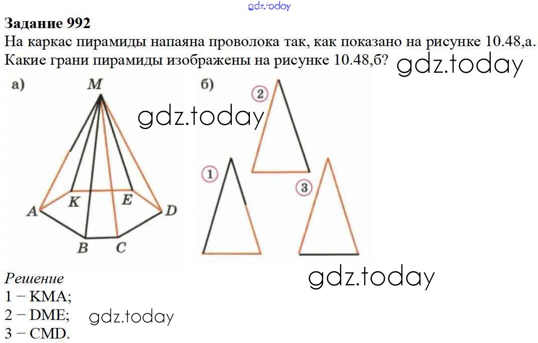 На страницах сайта gdz.today вы найдете учебный и вспомогательный материал, направленный на улучшения знаний школьной программы. ГДЗ - онлайн мир знаний 10.4. Пирамида Глава 10. Многогранники 992 Учебнику по Математике для 5 класса Дорофеев, Шарыгин Просвещение 2015