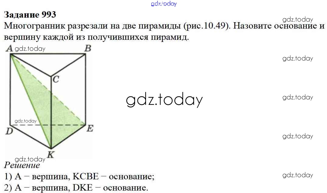 Ответы к 10.4. Пирамида Глава 10. Многогранники 993 Учебнику по Математике для 5 класса Дорофеев, Шарыгин Просвещение 2015