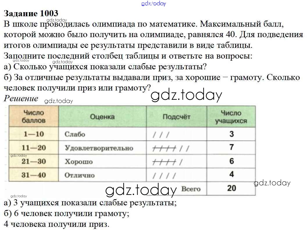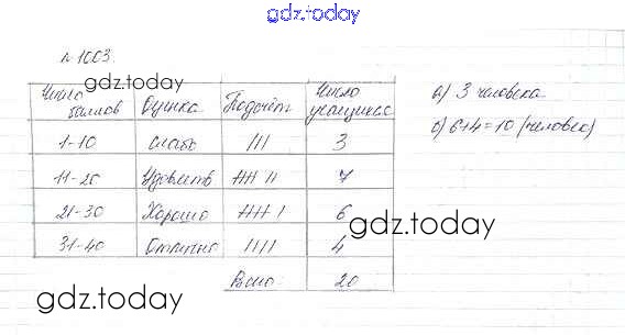 На страницах сайта gdz.today вы найдете учебный и вспомогательный материал, направленный на улучшения знаний школьной программы. ГДЗ - онлайн мир знаний 11.1. Чтение и составление таблиц Глава 11. Таблицы и диаграммы 1003 Учебнику по Математике для 5 класса Дорофеев, Шарыгин Просвещение 2015