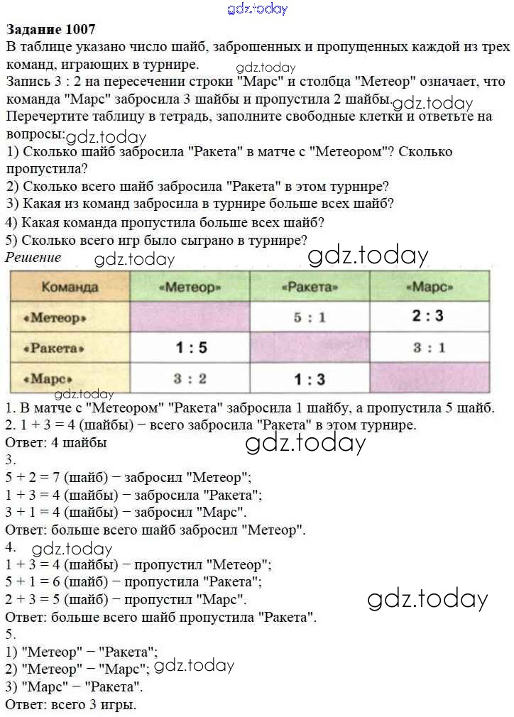 Ответы к 11.1. Чтение и составление таблиц Глава 11. Таблицы и диаграммы 1007 Учебнику по Математике для 5 класса Дорофеев, Шарыгин Просвещение 2015
