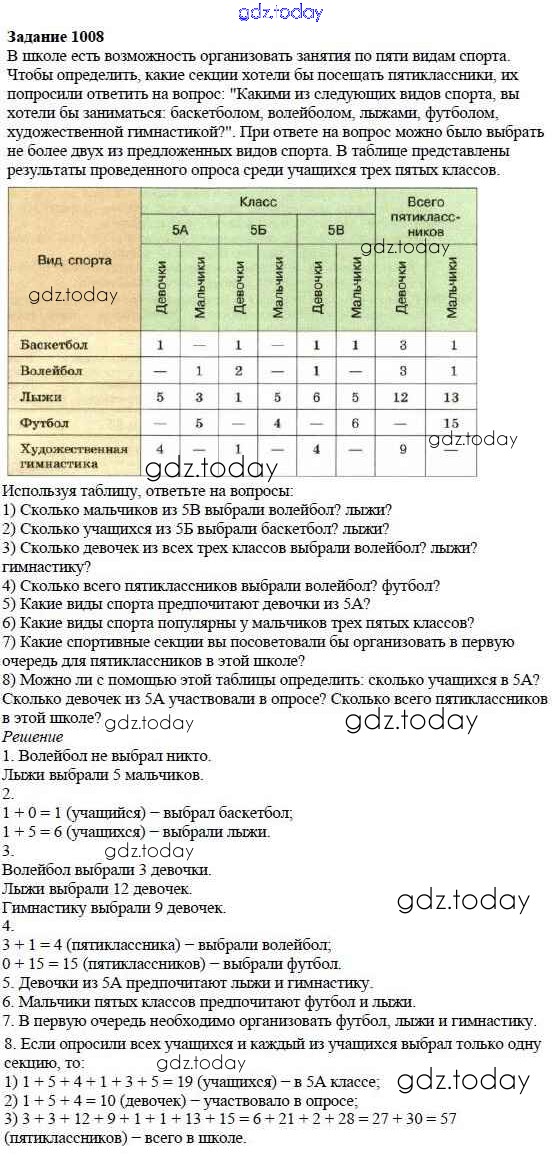 На страницах сайта gdz.today вы найдете учебный и вспомогательный материал, направленный на улучшения знаний школьной программы. ГДЗ - онлайн мир знаний 11.1. Чтение и составление таблиц Глава 11. Таблицы и диаграммы 1008 Учебнику по Математике для 5 класса Дорофеев, Шарыгин Просвещение 2015