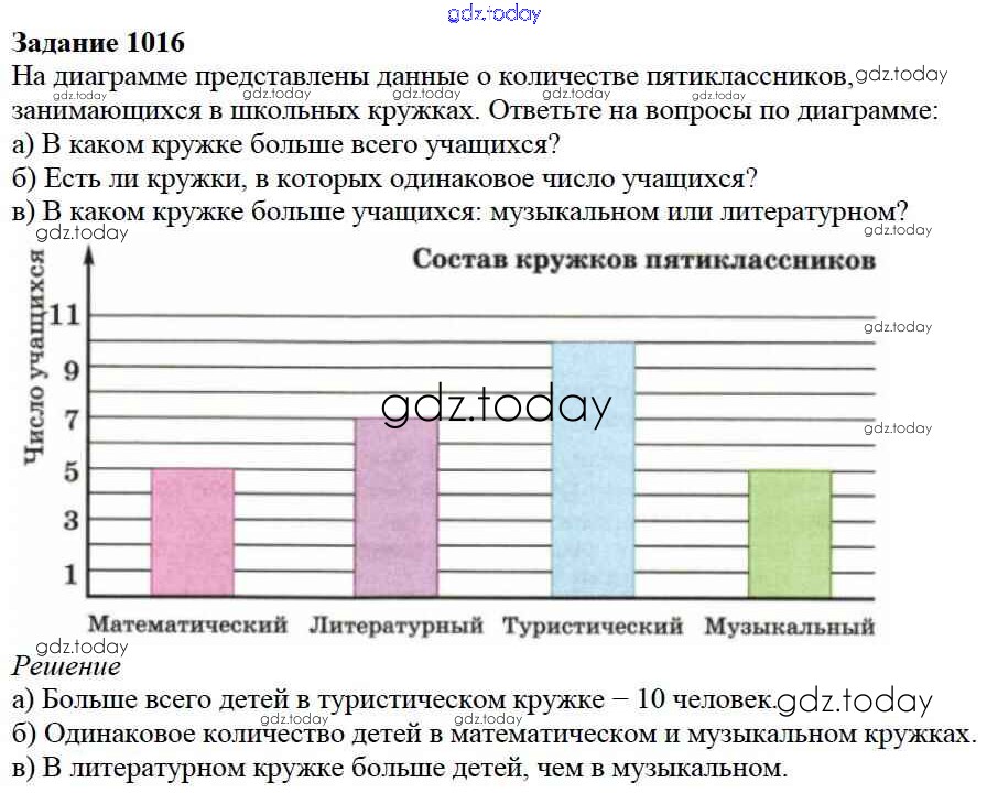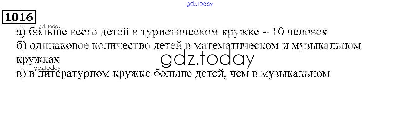 На страницах сайта gdz.today вы найдете учебный и вспомогательный материал, направленный на улучшения знаний школьной программы. ГДЗ - онлайн мир знаний 11.2. Диаграммы Глава 11. Таблицы и диаграммы 1016 Учебнику по Математике для 5 класса Дорофеев, Шарыгин Просвещение 2015