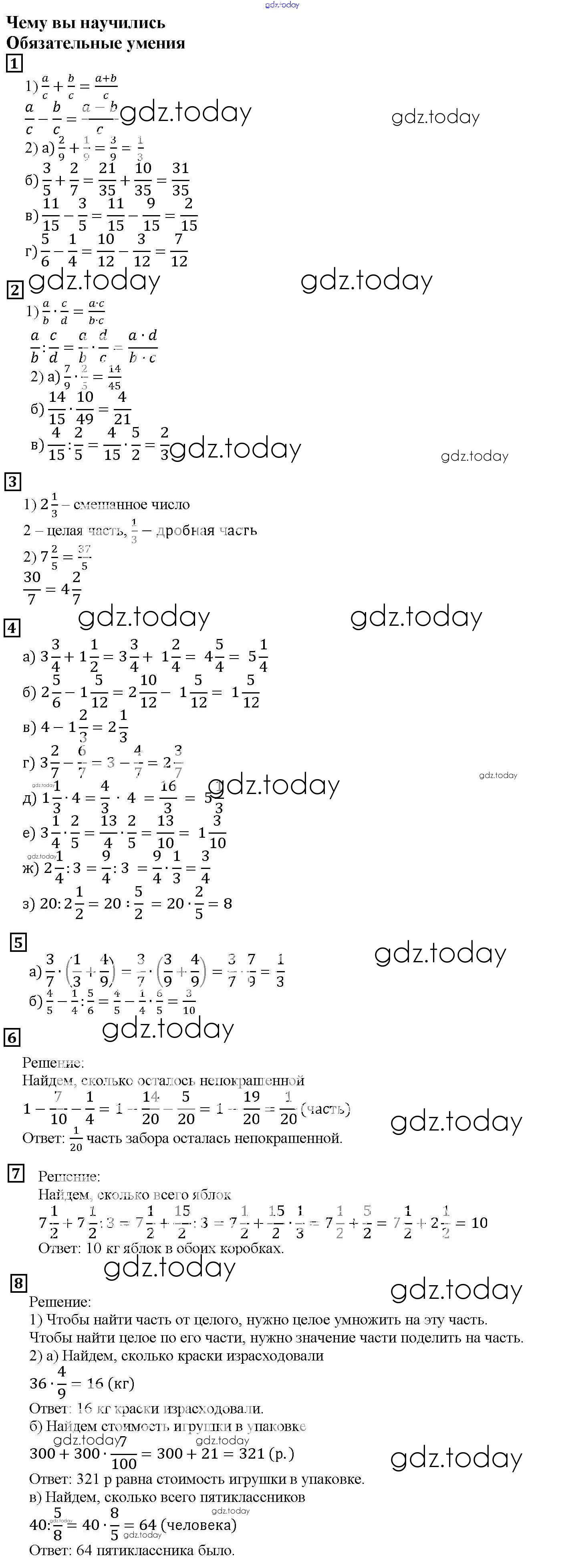 На страницах сайта gdz.today вы найдете учебный и вспомогательный материал, направленный на улучшения знаний школьной программы. ГДЗ - онлайн мир знаний Чему вы научились Глава 9 Учебнику по Математике для 5 класса Дорофеев, Шарыгин Просвещение 2015